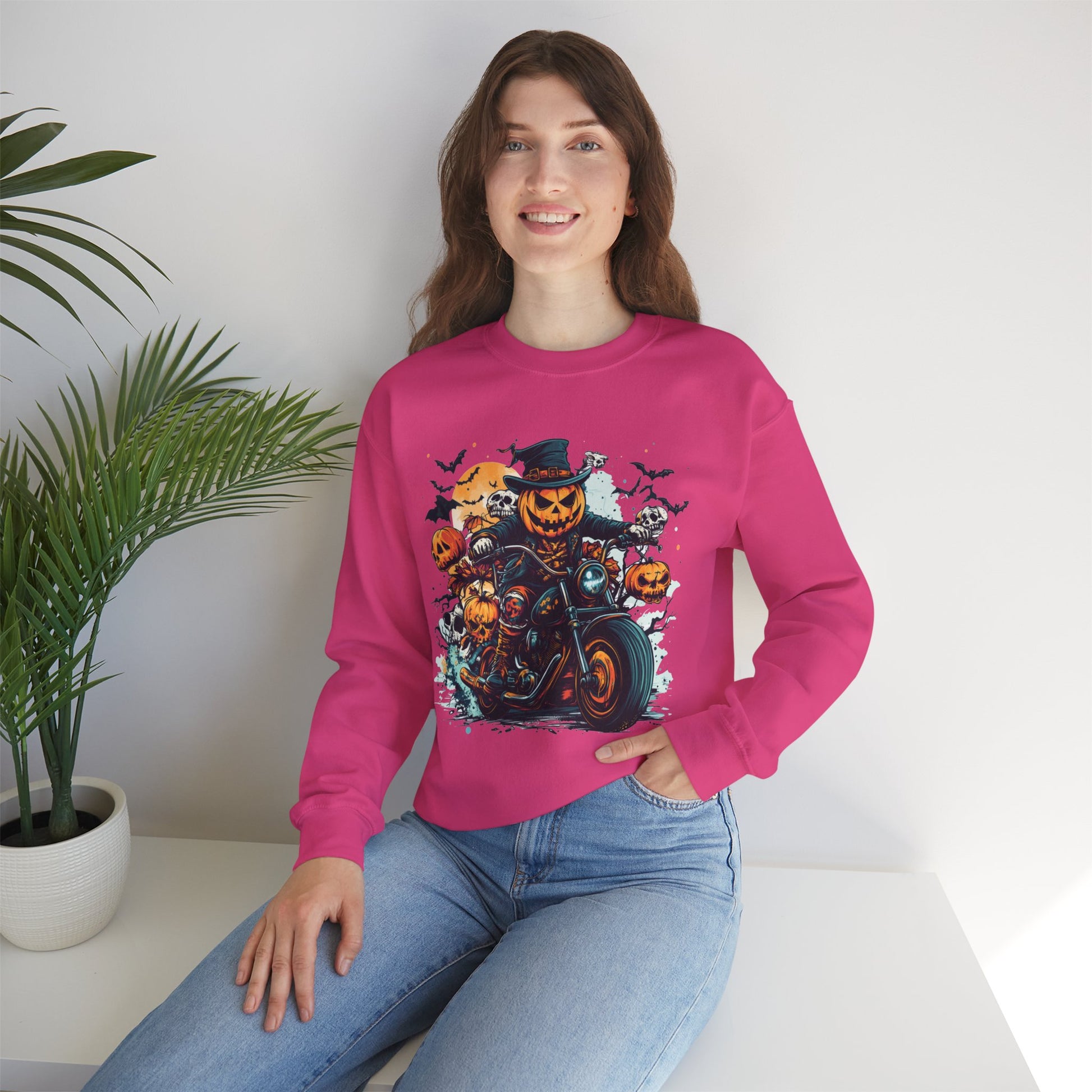 Ride into spooky season with this Halloween motorcycle sweatshirt, a bold and cozy pumpkin crewneck perfect for autumn nights. This cozy Unisex Heavy Blend™ Crewneck Sweatshirt is made from a soft heavy blend fabric. This spooky biker sweatshirt keeps you warm while showcasing a unique vintage-style Halloween design. Whether you’re hitting a Halloween party, joining fall gatherings, or enjoying a laid-back night at home, this Halloween pumpkin sweatshirt blends comfort and festive style. This versatile Halloween crewneck sweatshirt is ideal for adults who love edgy seasonal fashion and makes a thoughtful gift for bikers, motorcycle riders, and Halloween enthusiasts. Perfect for October nights, costume events, or casual autumn wear, this cozy Halloween sweater is a must-have for anyone who wants to combine warmth, style, and holiday spirit