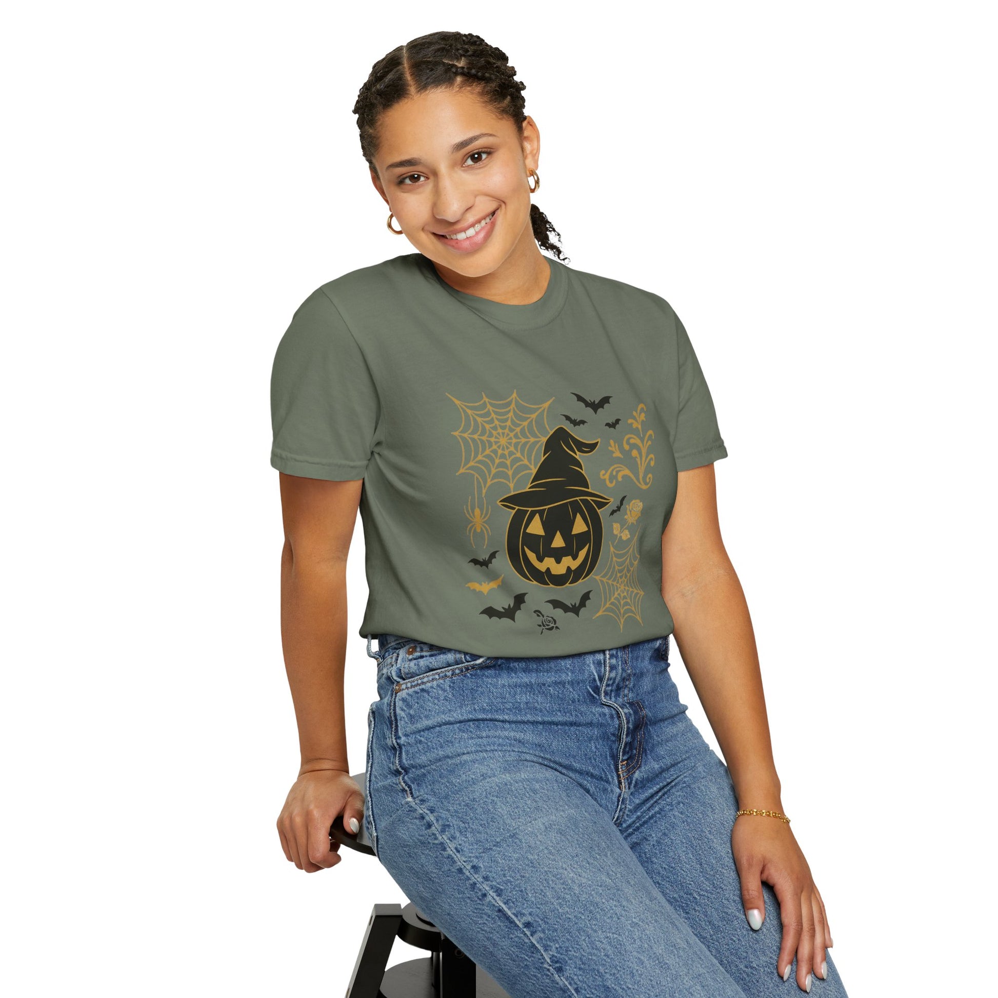 Celebrate spooky season in style with this Halloween Pumpkin T-Shirt, a festive unisex graphic tee designed for comfort and seasonal flair. Featuring a playful pumpkin design with ghost and bat details, this shirt captures the perfect mix of fun and spooky vibes for October. Made from soft garment-dyed fabric, it delivers a relaxed fit ideal for trick-or-treating, haunted house visits, Halloween parties, or cozy fall gatherings. Whether you’re pairing it with jeans, joggers, or layering under a hoodie, this Halloween graphic tee is a versatile addition to your autumn wardrobe. This Unisex Garment-Dyed T-shirt is perfect as a Halloween party shirt, October festival outfit, or fall gift; it suits all ages—from teens and young adults to parents and families wanting matching festive apparel. Surprise a loved one with this pumpkin Halloween shirt and make their October celebration even more special.